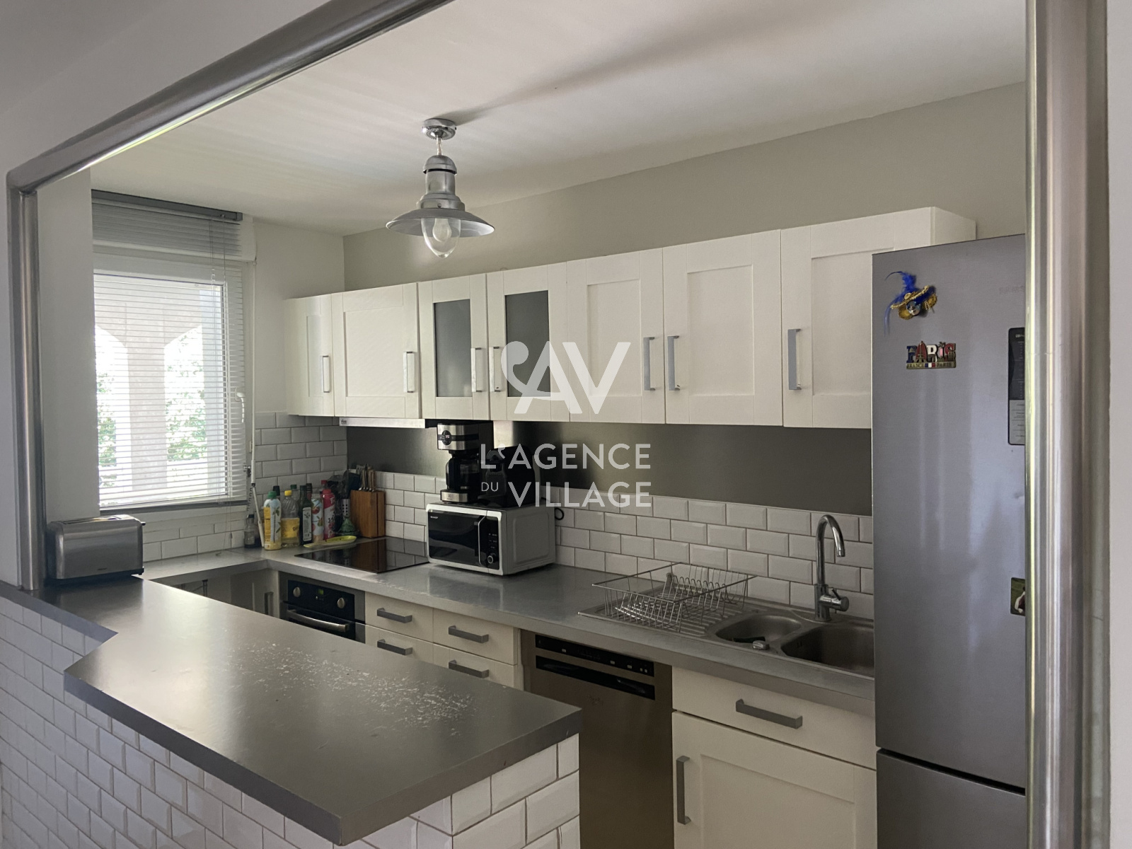 Cuisine américaine et salle de bains rénovées.