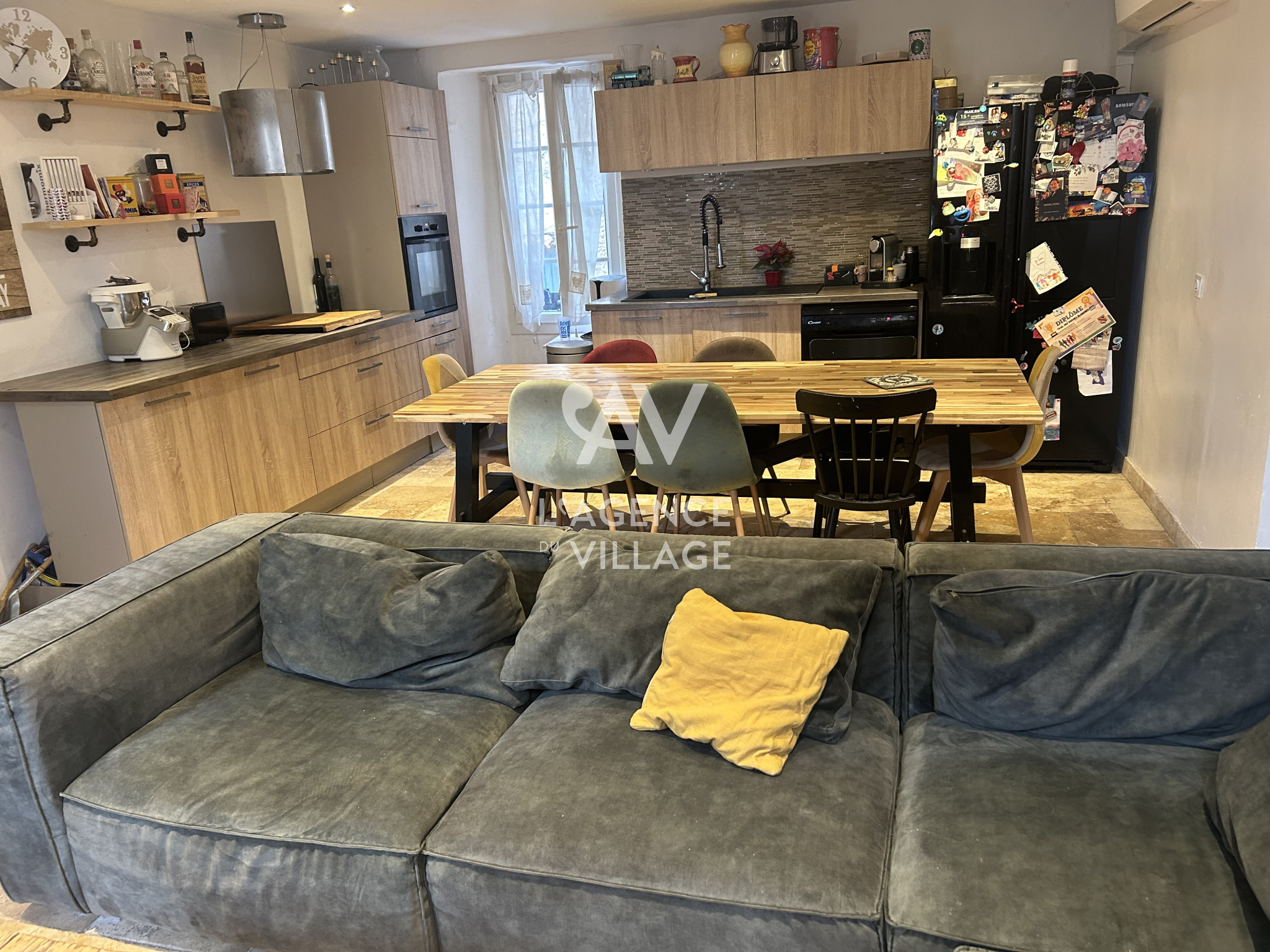 RDC : jolie entrée, grand séjour traversant avec cuisine américaine, moderne et équipée.