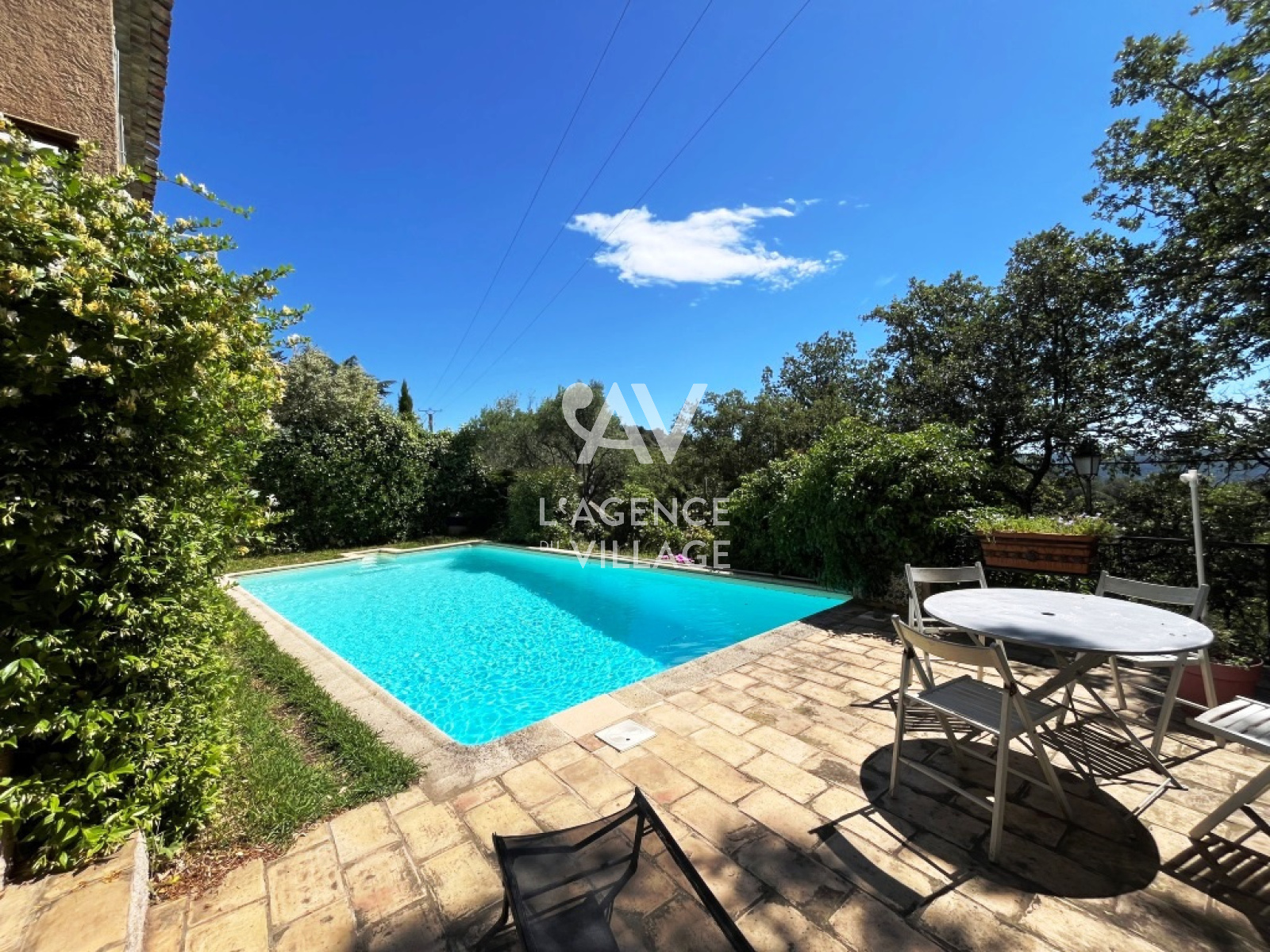 Extérieurs bucoliques, piscine et garage.